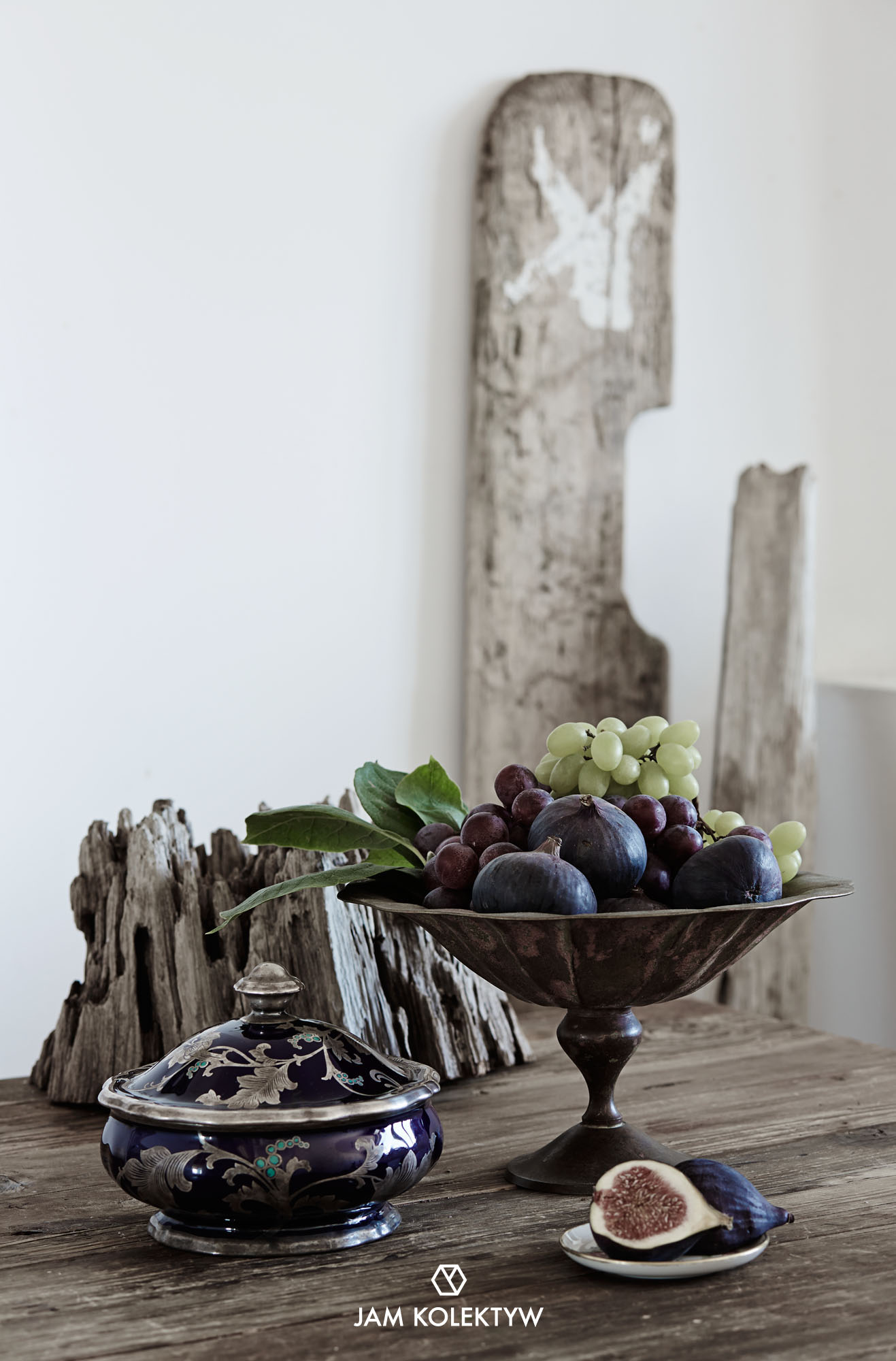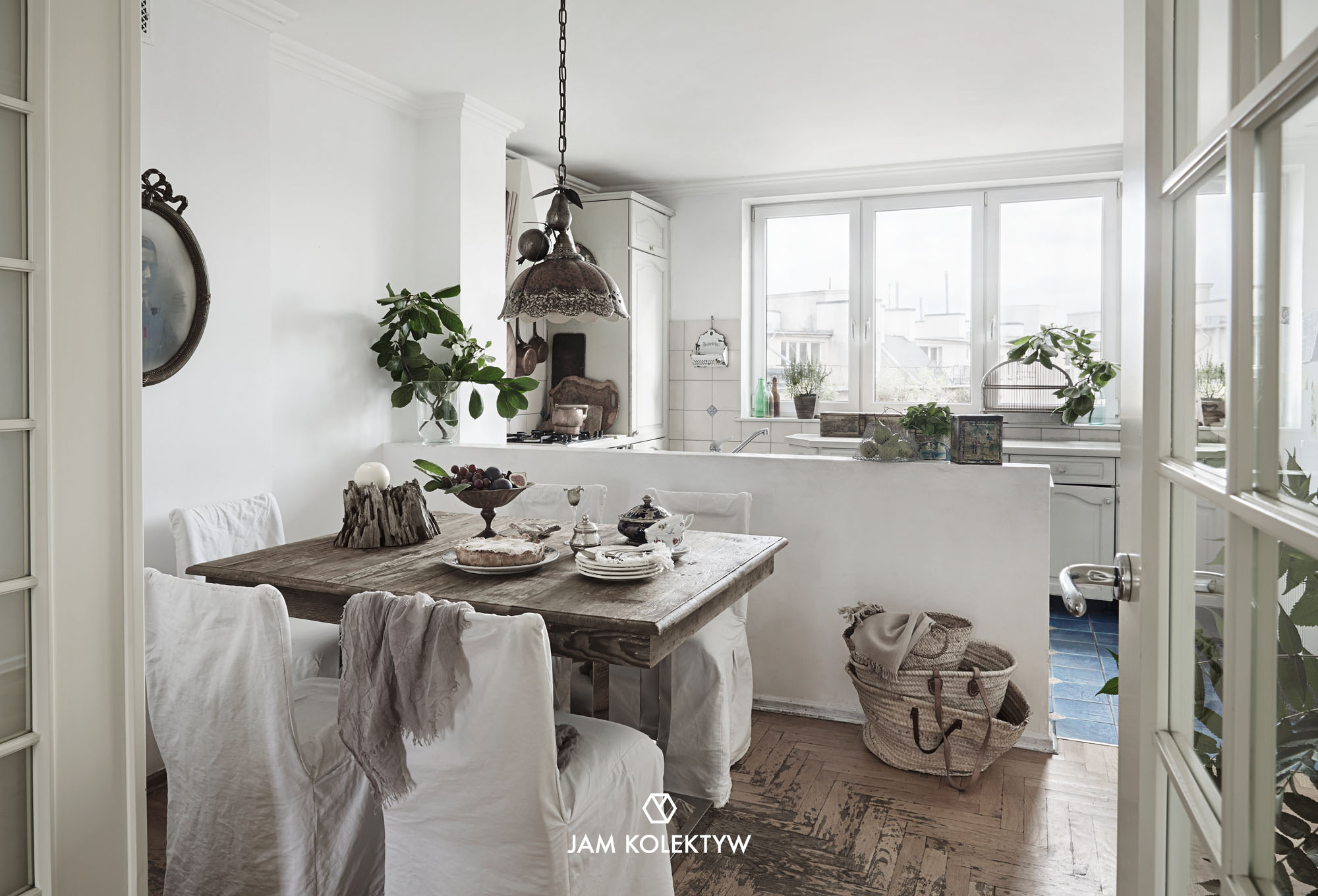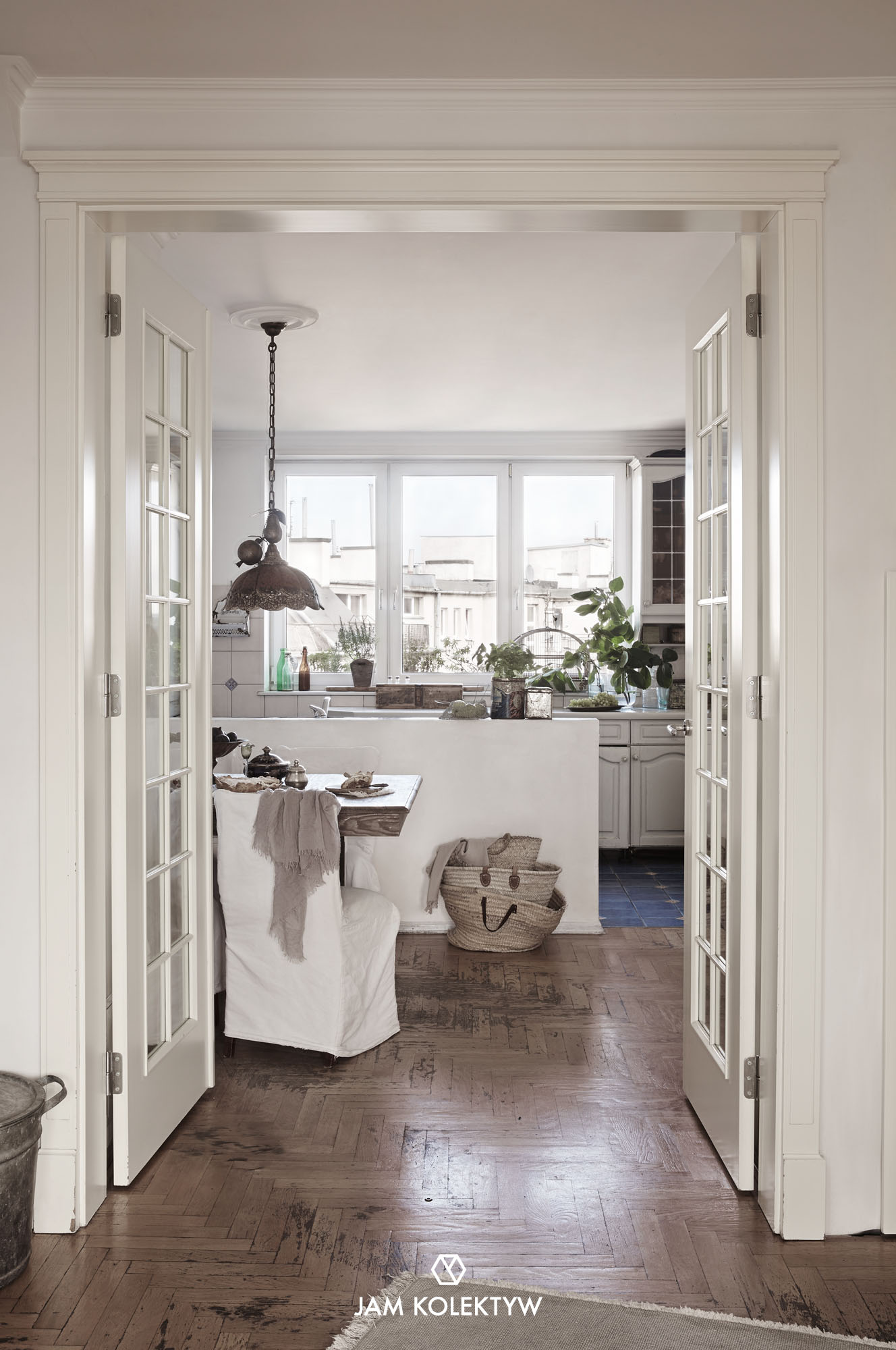 W przestrzeni dominują naturalne materiały. Wszystkie meble i dodatki zostały starannie dobrane przez właścicielkę, część z nich to rodzinne pamiątki, niektóre zostały kupione na targach staroci, albo w sklepach z antykami. Dom ozdabiają też jedwabne tkaniny – chusty i szale, malowane przez Katarzynę w zwierzęce i roślinne motywy.