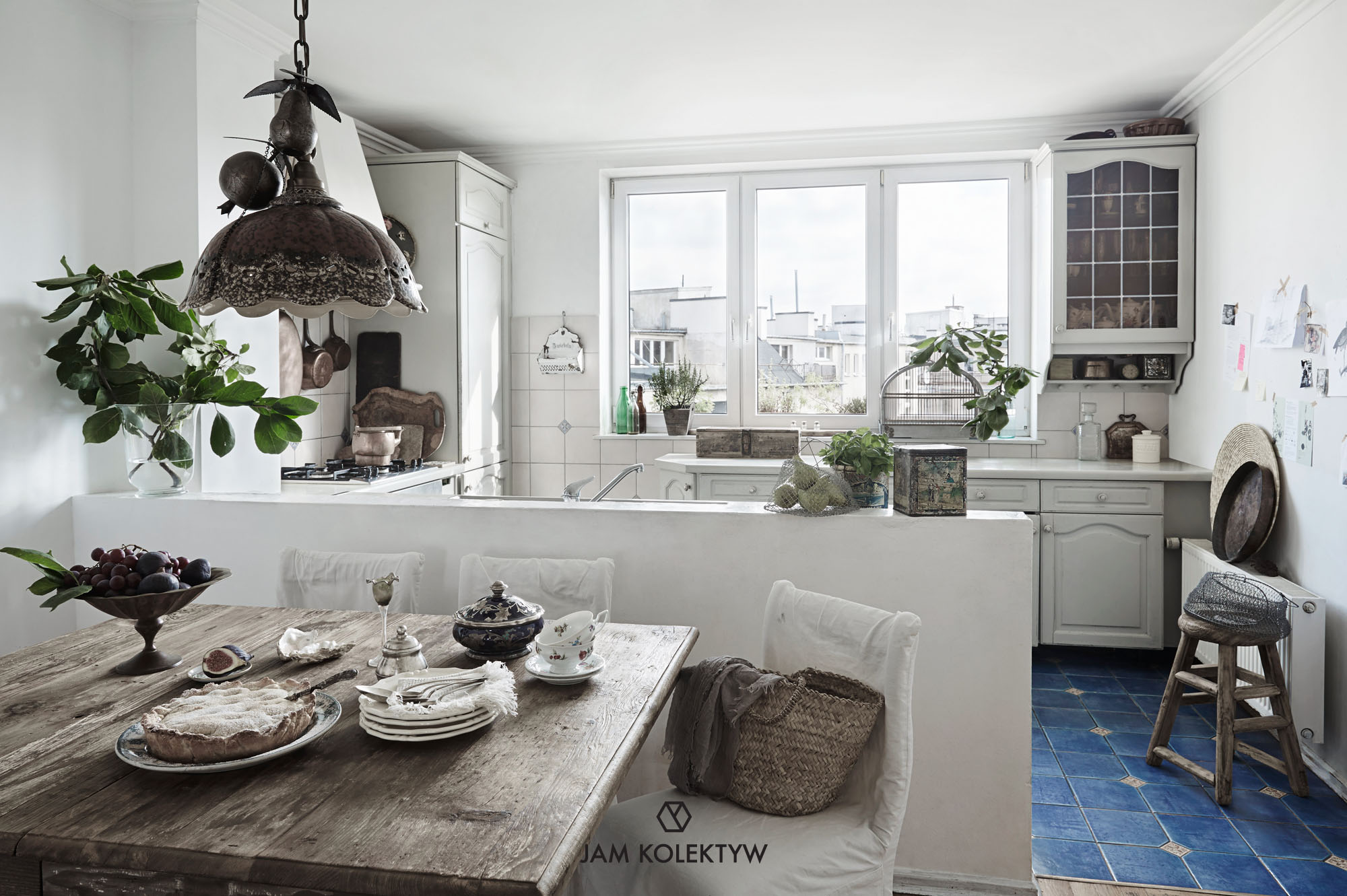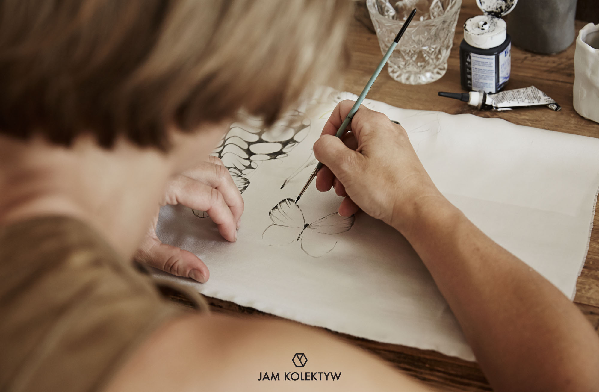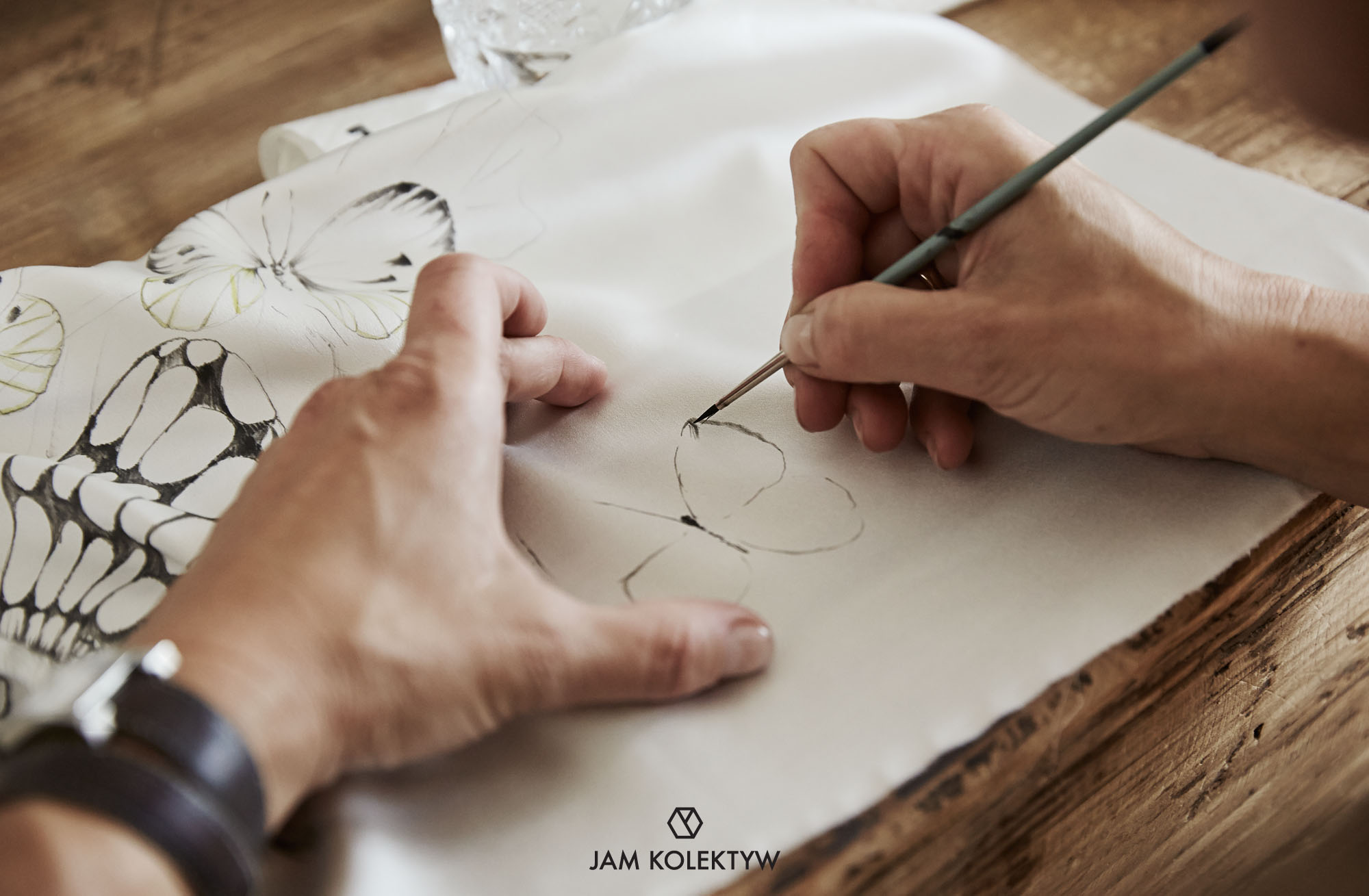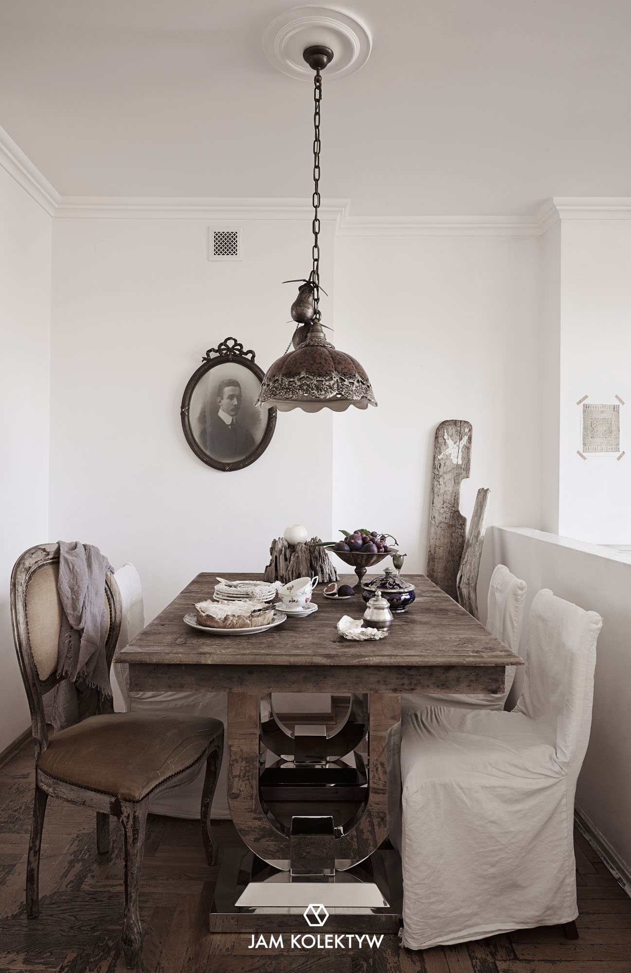W przestrzeni dominują naturalne materiały. Wszystkie meble i dodatki zostały starannie dobrane przez właścicielkę, część z nich to rodzinne pamiątki, niektóre zostały kupione na targach staroci, albo w sklepach z antykami. Dom ozdabiają też jedwabne tkaniny – chusty i szale, malowane przez Katarzynę w zwierzęce i roślinne motywy.